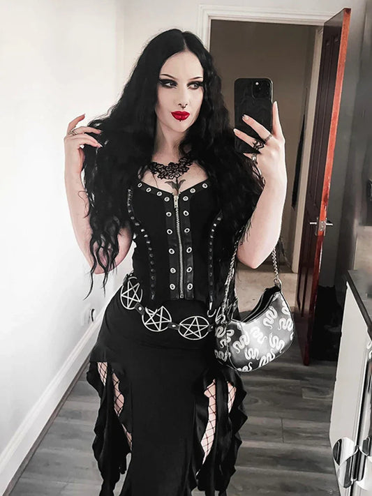 Women's Gothic Spice Girls Rivet Patchwork Summer Vest Crop Top
