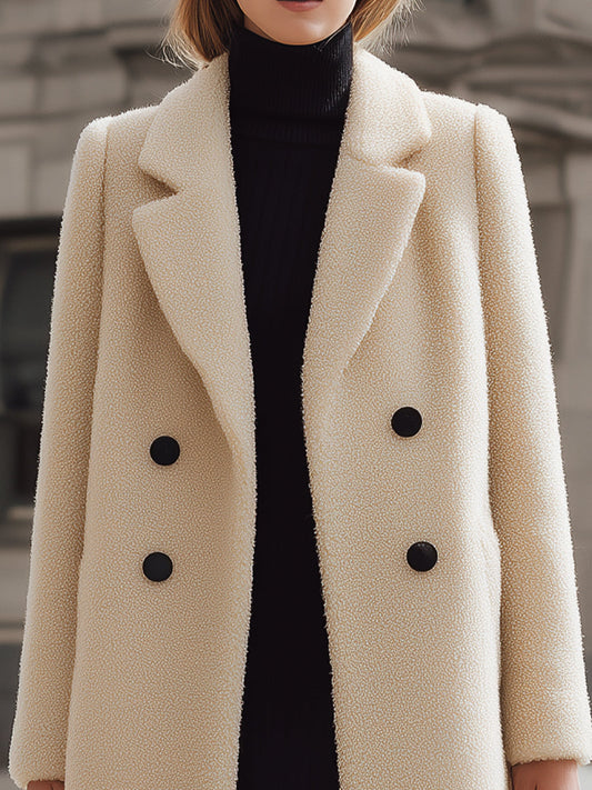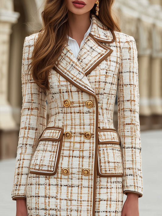 Contrast Trim Tweed Double-Breasted Longline Coat