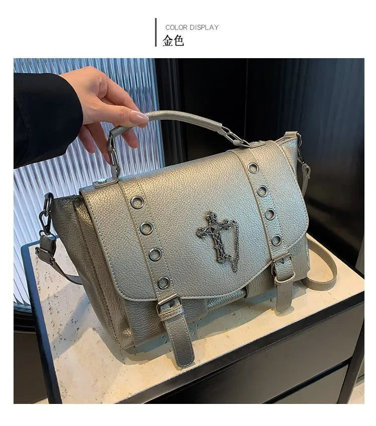 Retro Leather Crossbody Cross Black Y2K Messenger Casual Dark Gothic Shoulder Bag