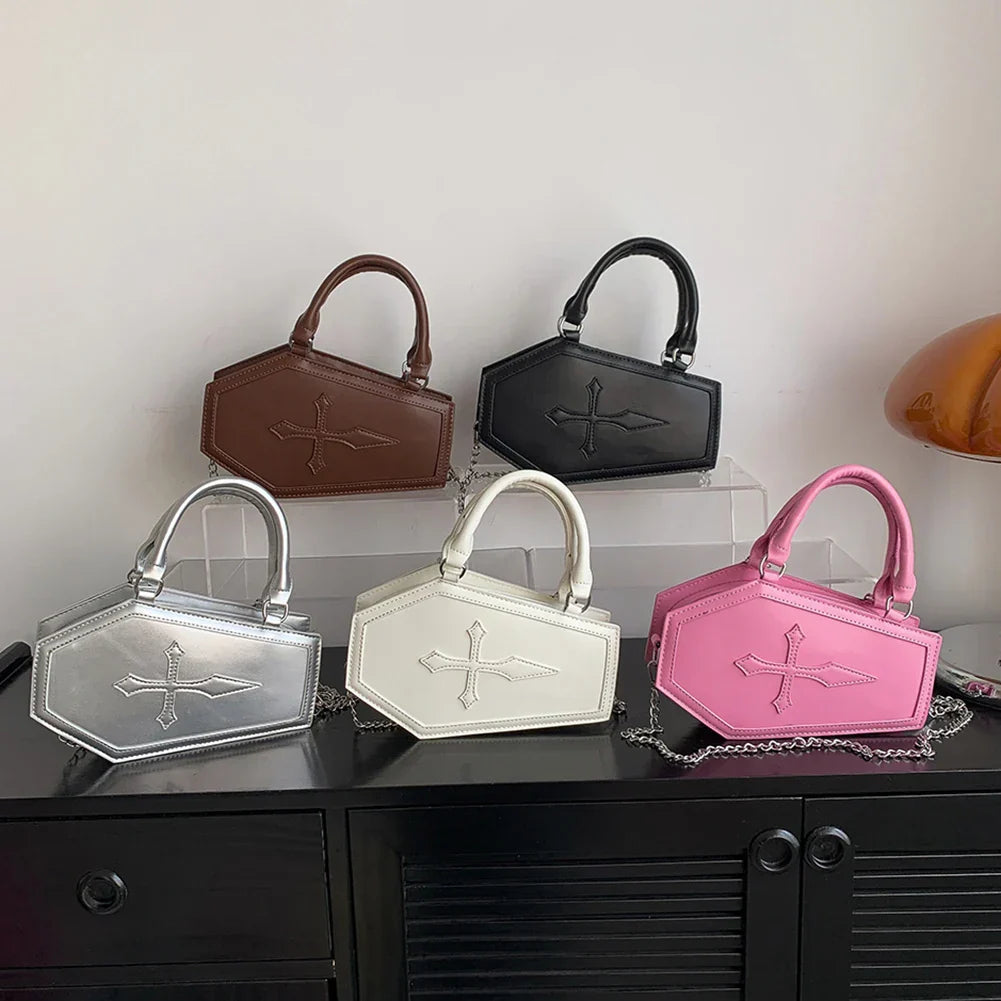 Large Coffin Shape Top Crossbody Travel Phone Capacity Cosmetic Shoulder Handle PU Bag
