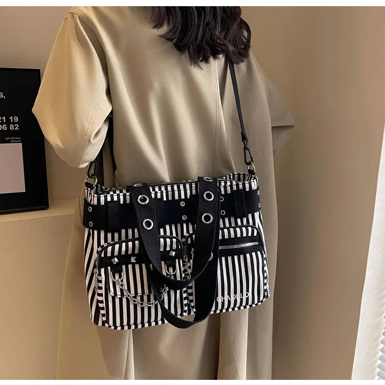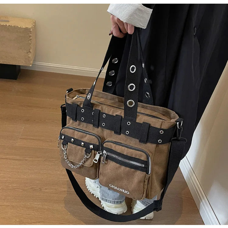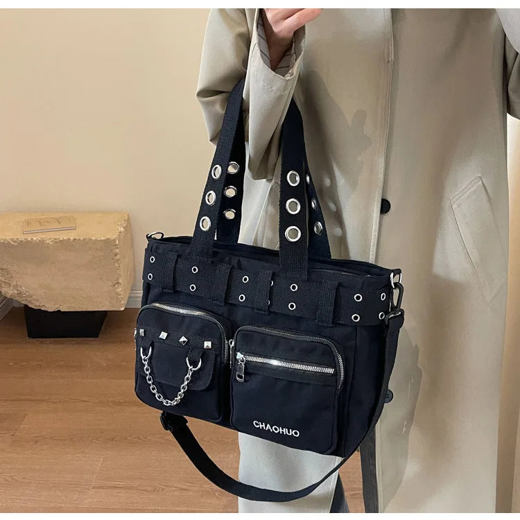 Gothic Out Dark Rock Hollow Cosplay PU Pentagram Black Leather Punk Bag