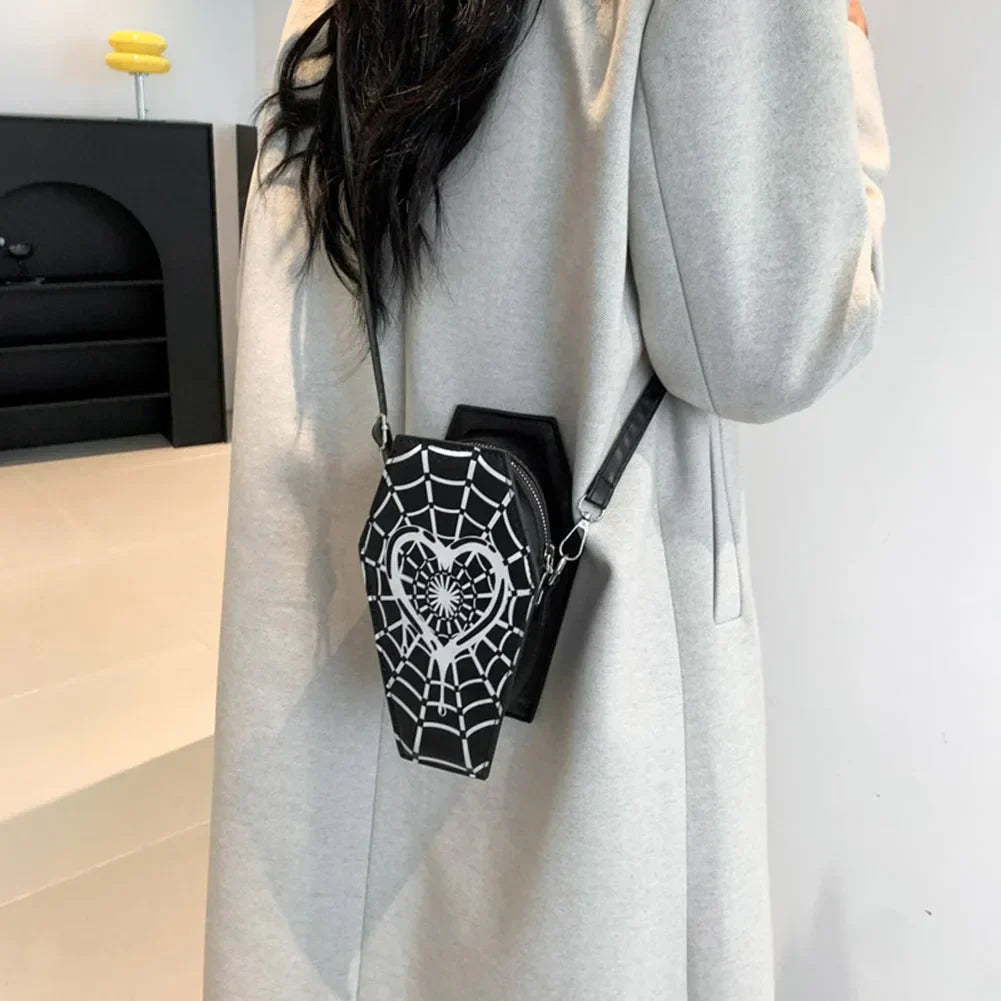 Gothic Leather Coffin Web PU Halloween Designer Spider Small Bag