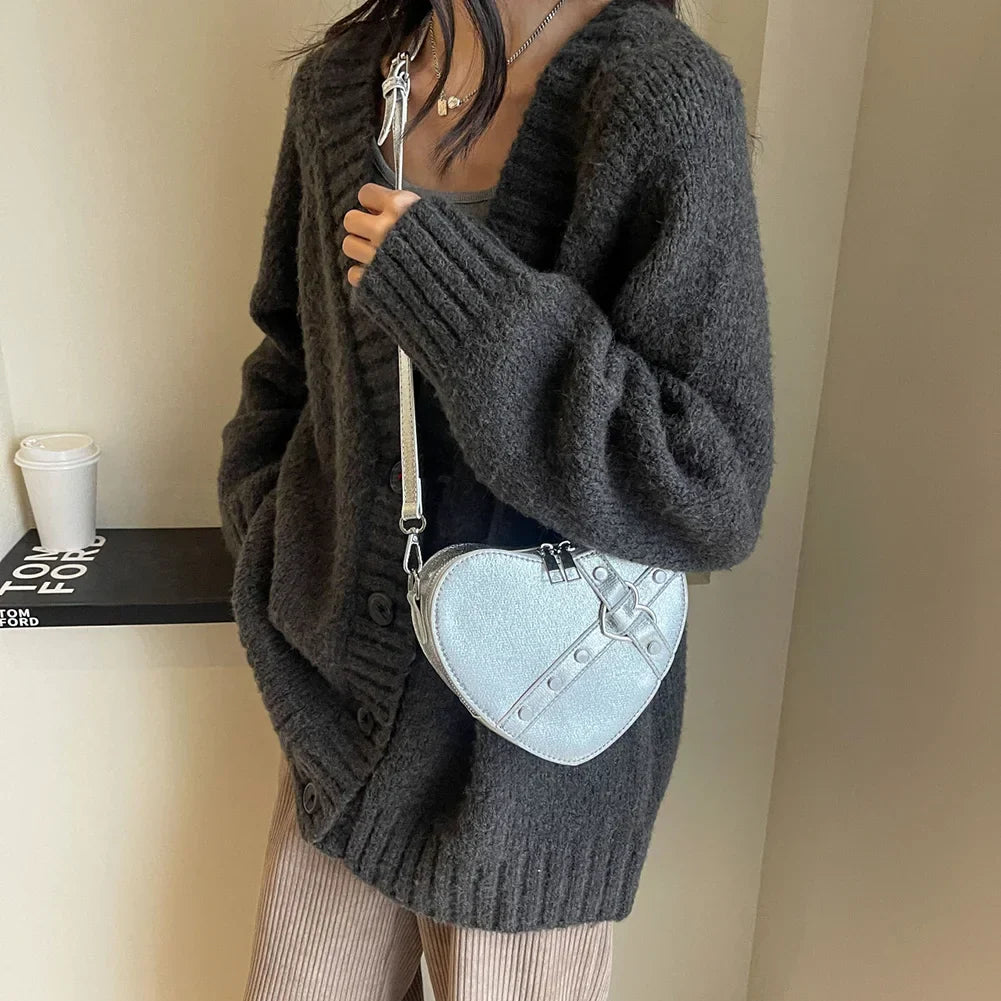 Vintage Chain Rivet PU Heart Small Leather Y2K Red Shaped Bag