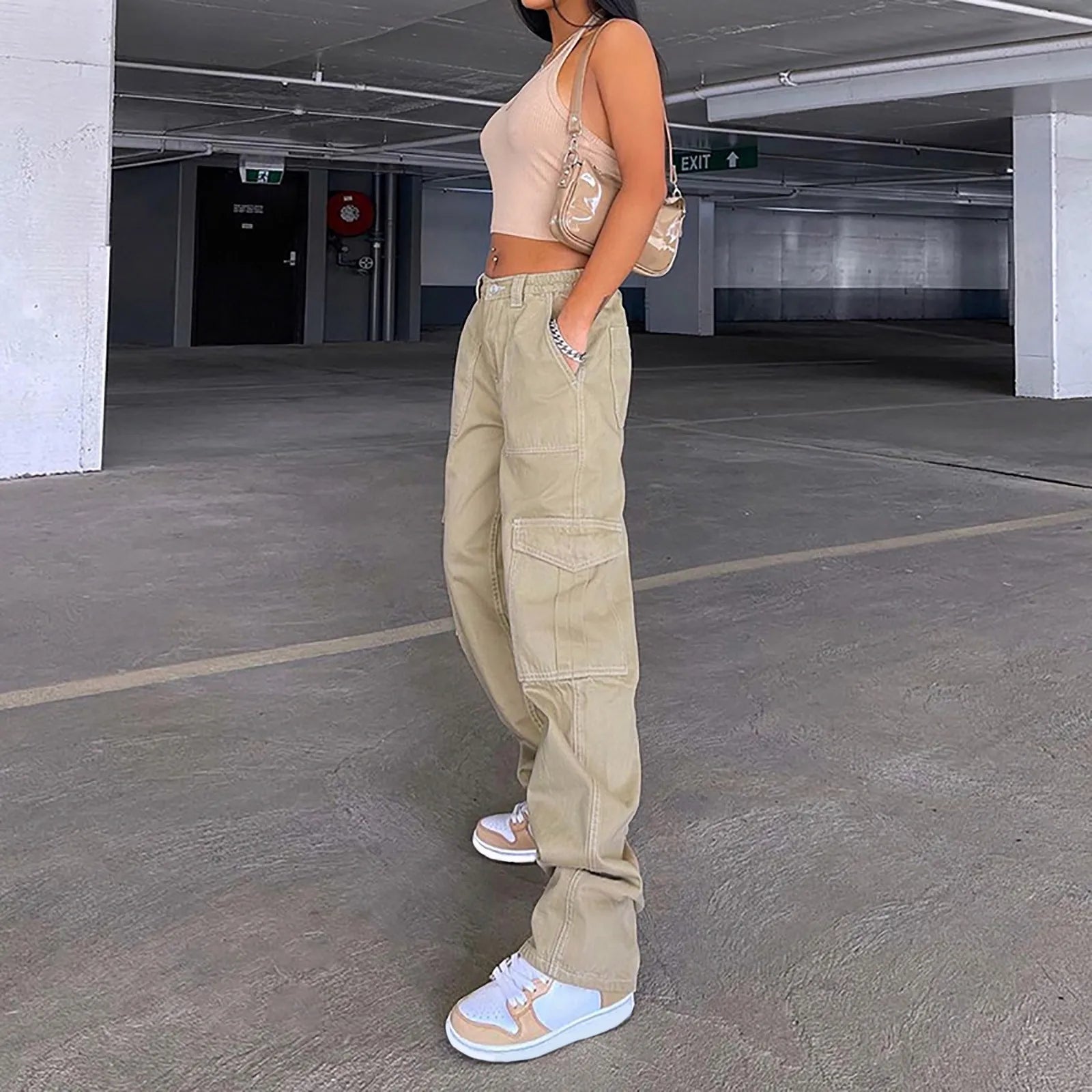 Solid Color High Waist Straight-leg Buckle Brown Jean
